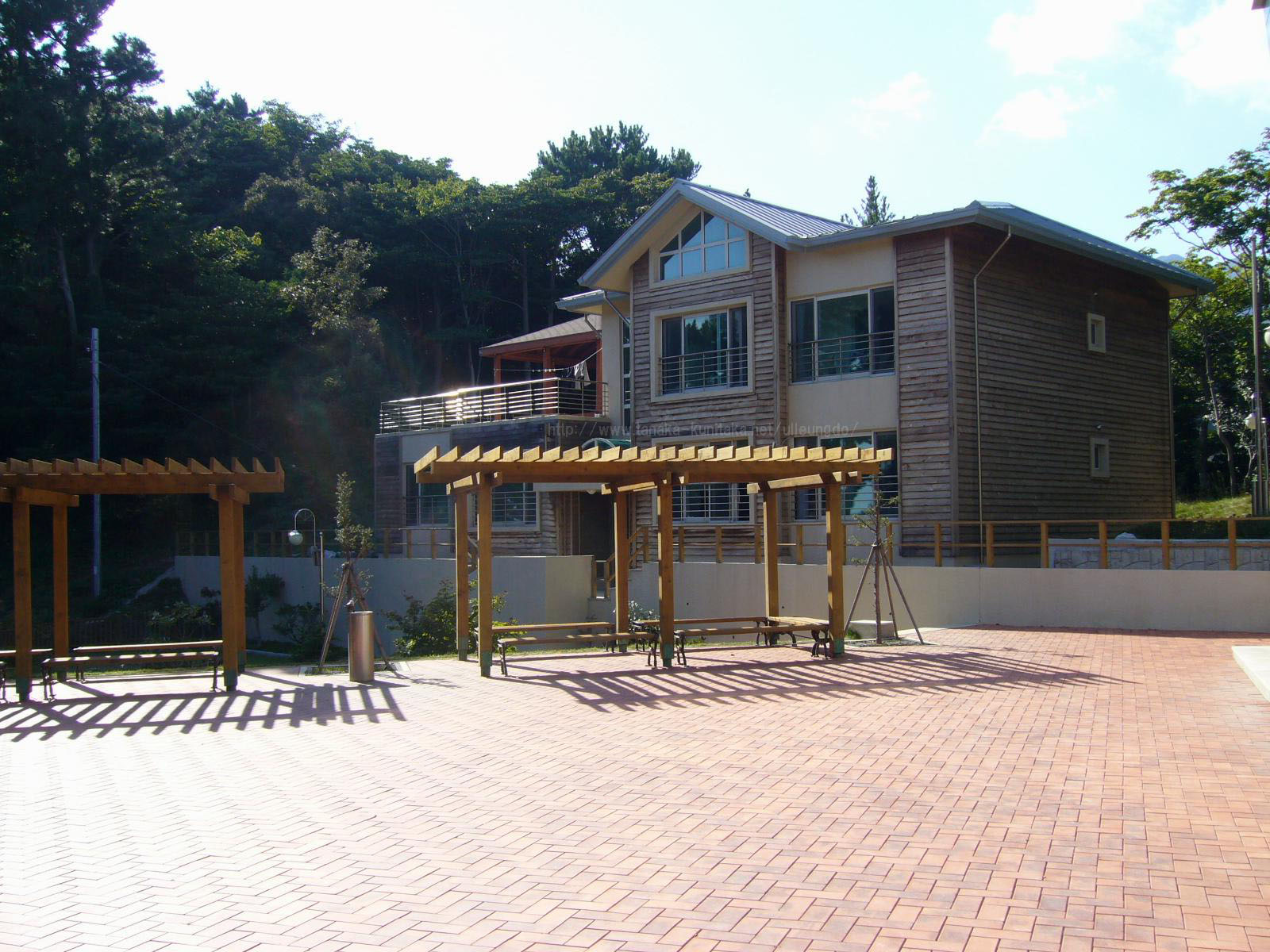 階段を上った左側の建物はロッジハウスのようだ。