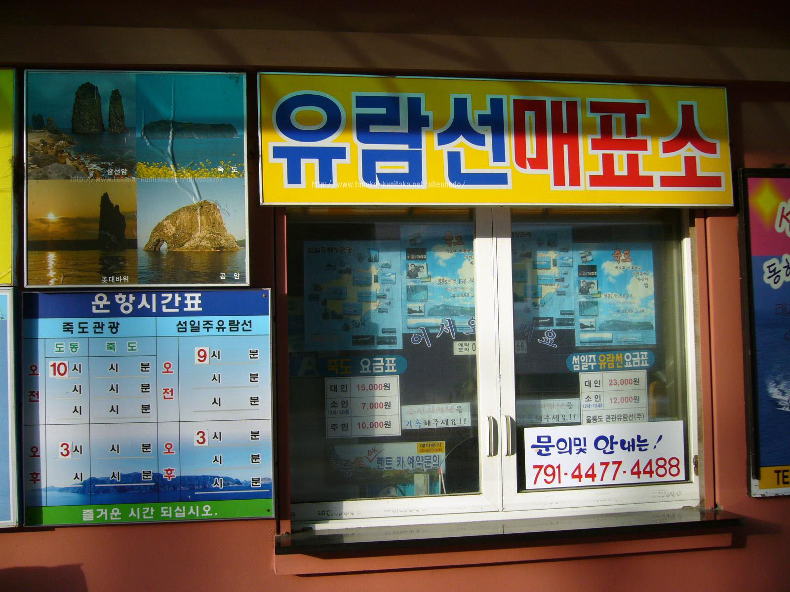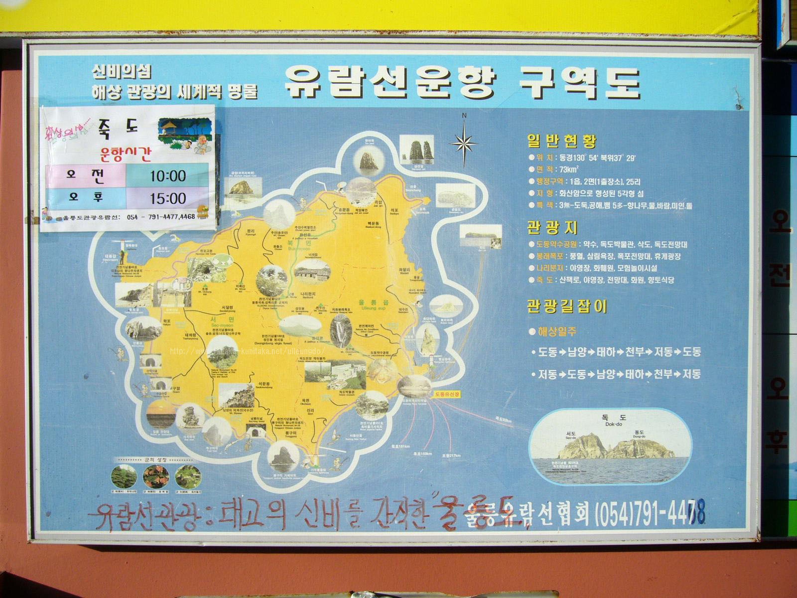 鬱陵島で一番の観光といえば、島一周遊覧船である。奇怪な岩石を見ることが出来る。遊覧時間は約1時間30分である。