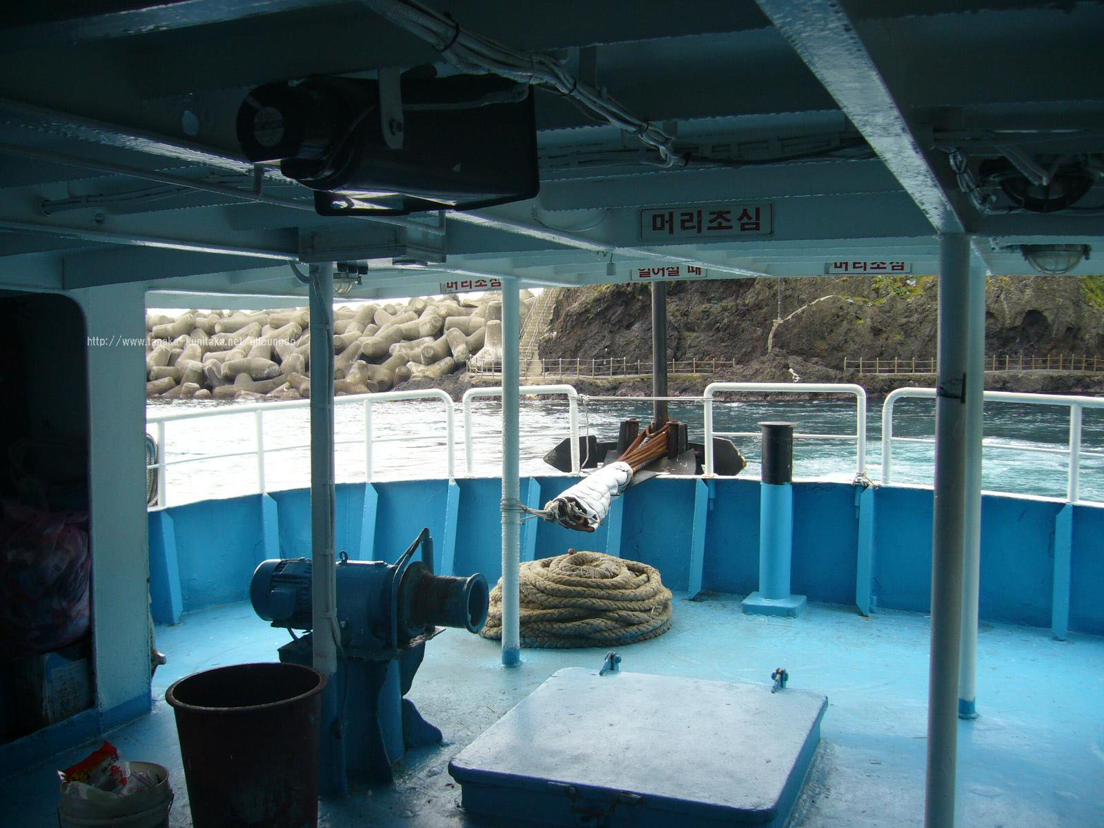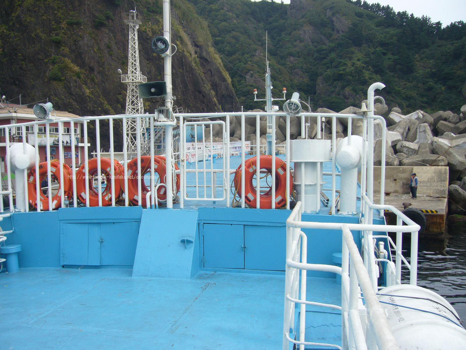 こちらは左側。韓国のおばさん達は大体船内に陣取る。