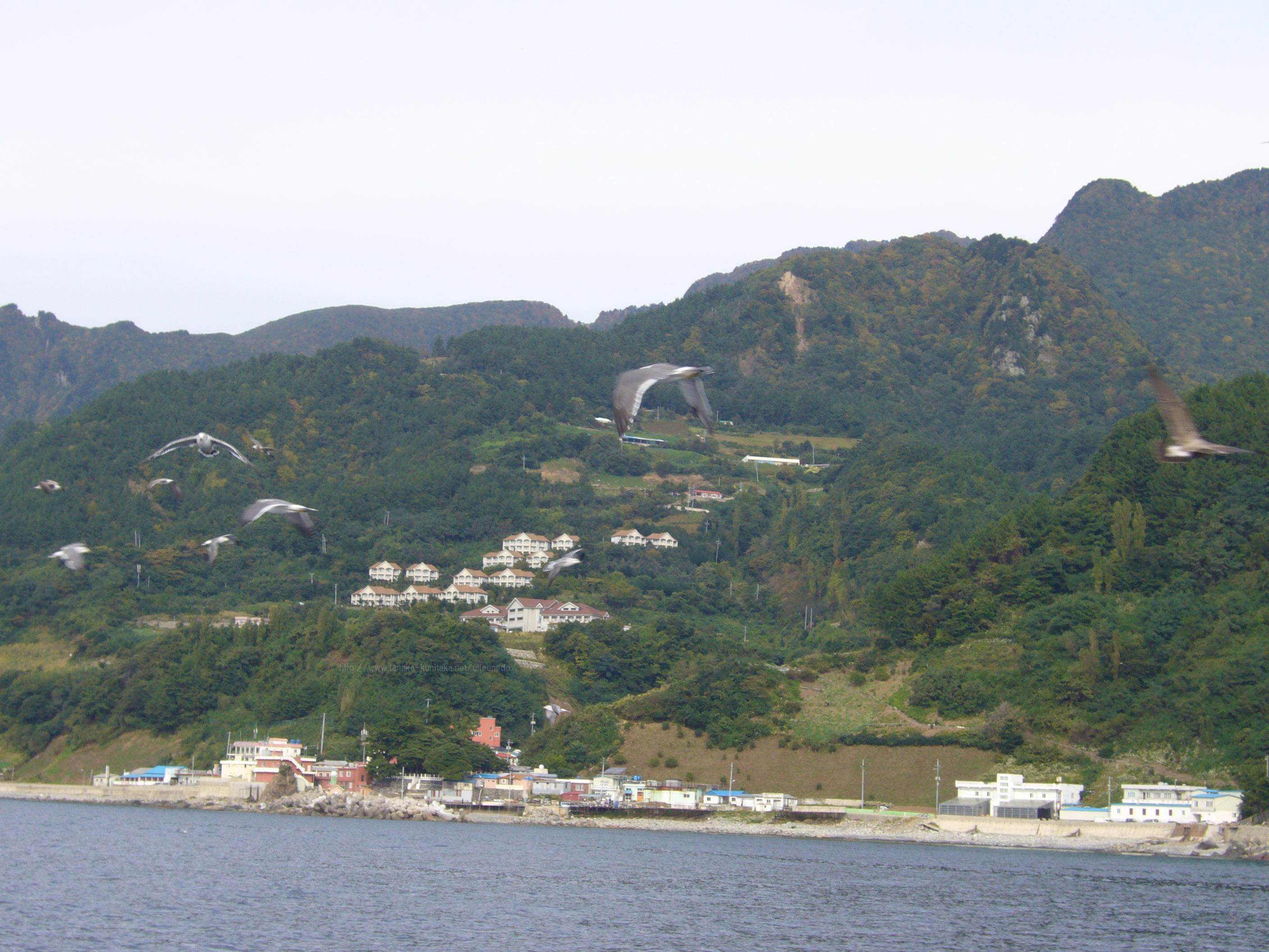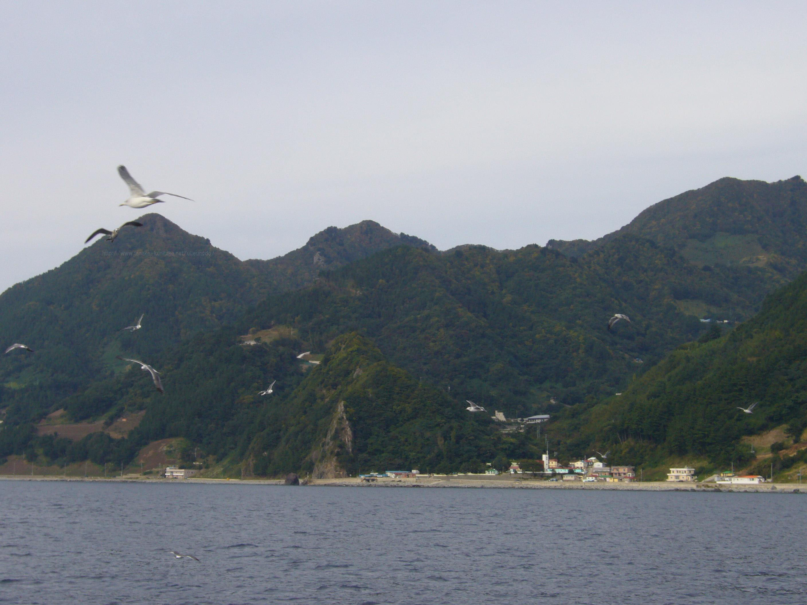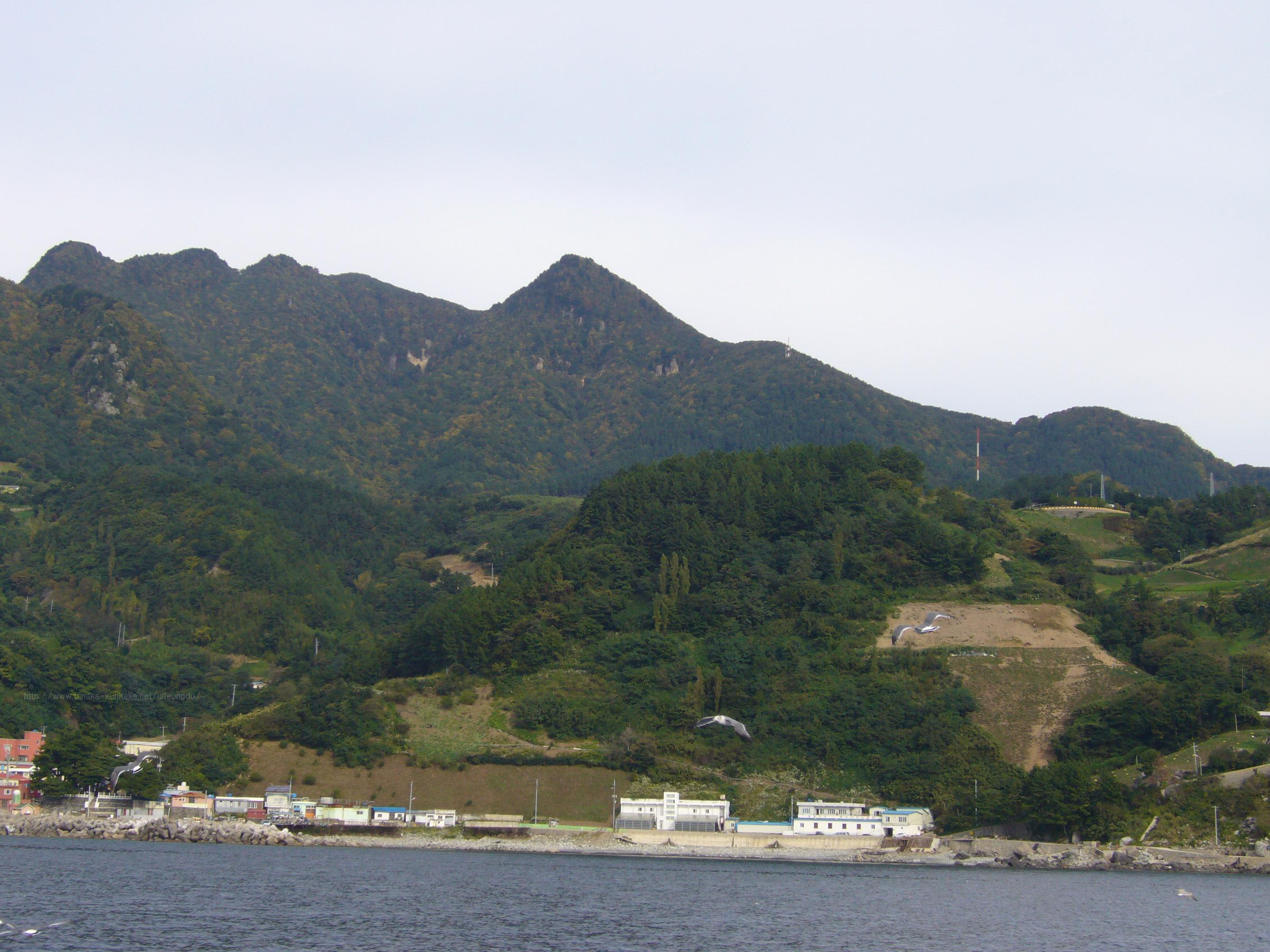 鬱陵島の集落は例外なく山と山、峰と峰の間にある。。