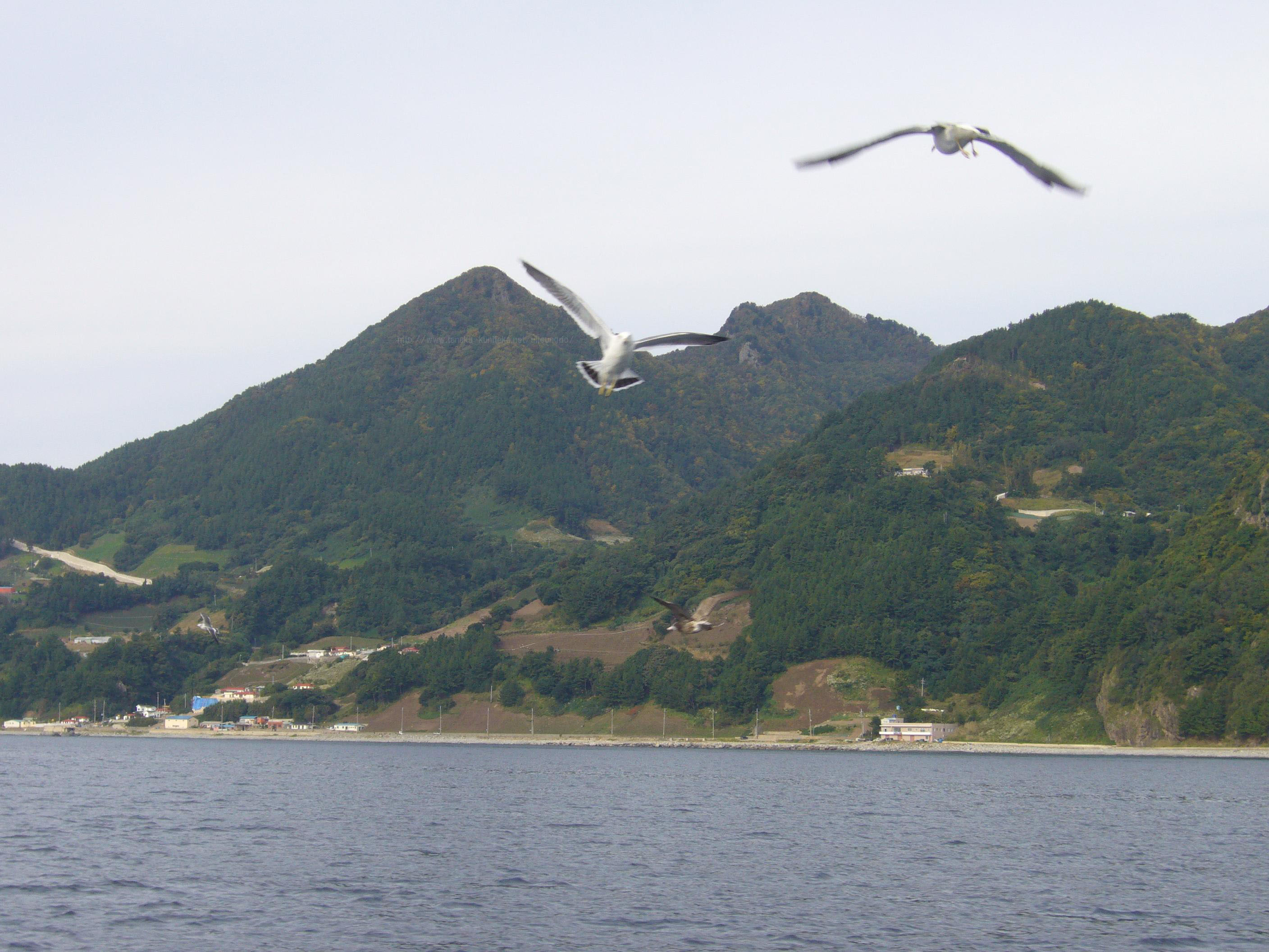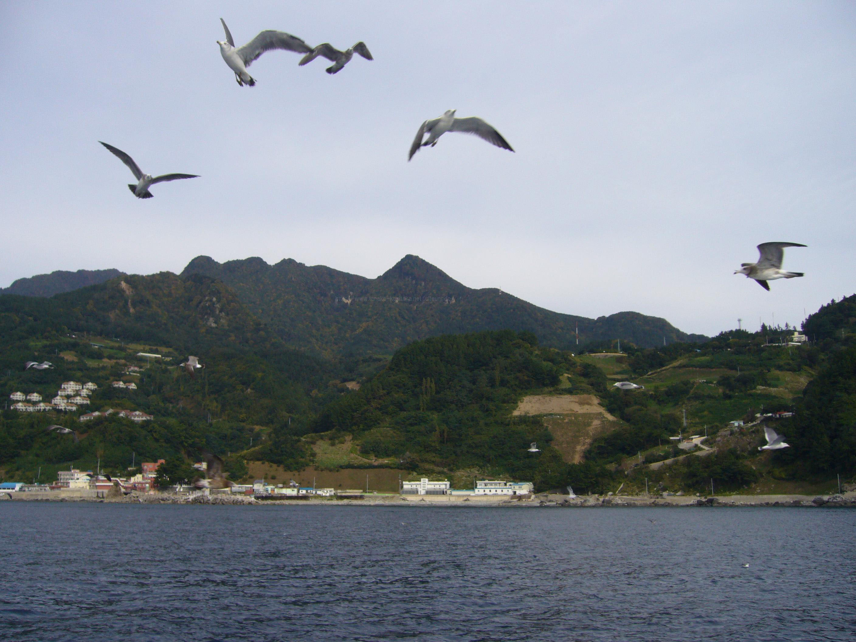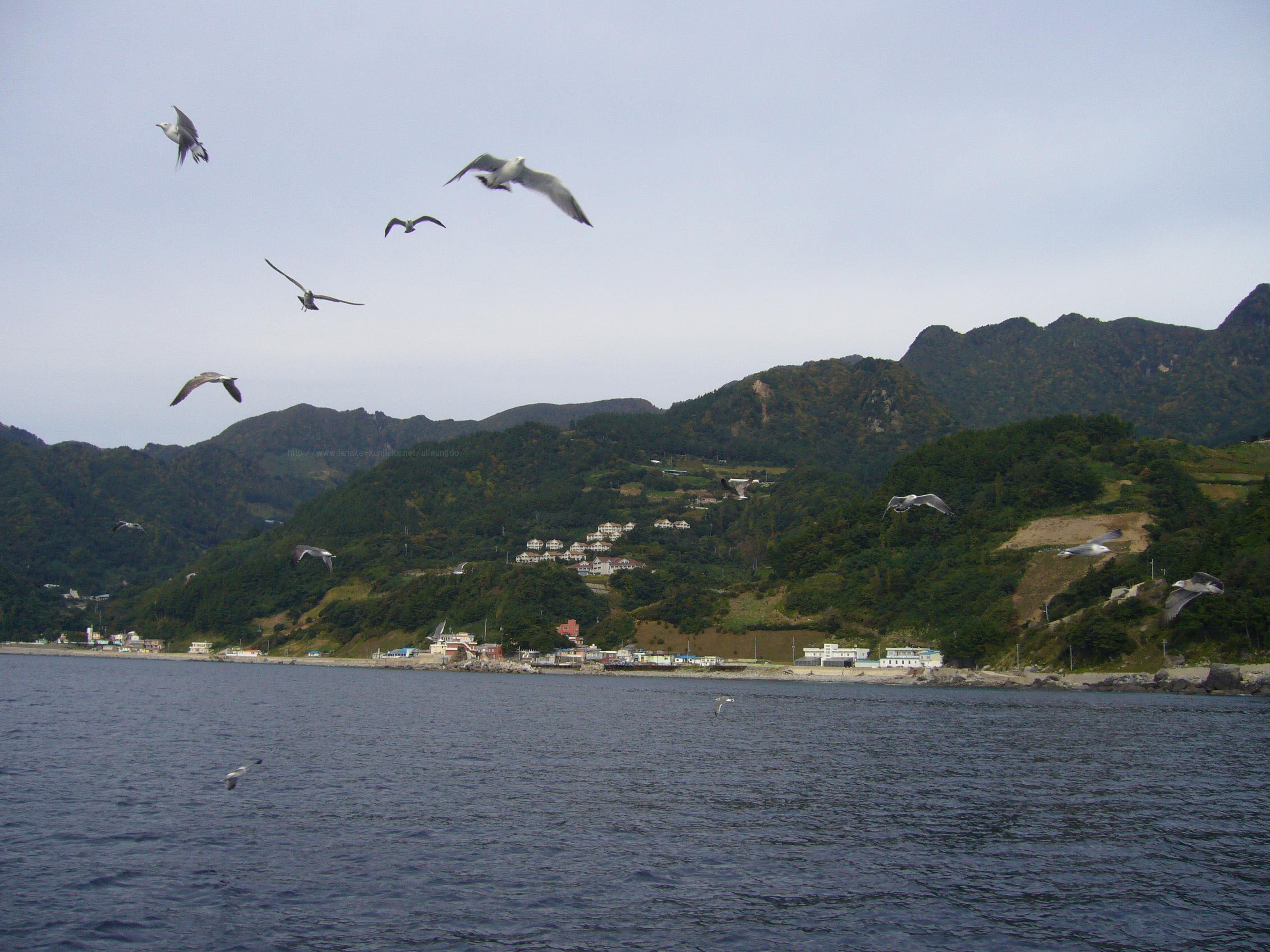 鬱陵島の集落は例外なく山と山、峰と峰の間にある。。