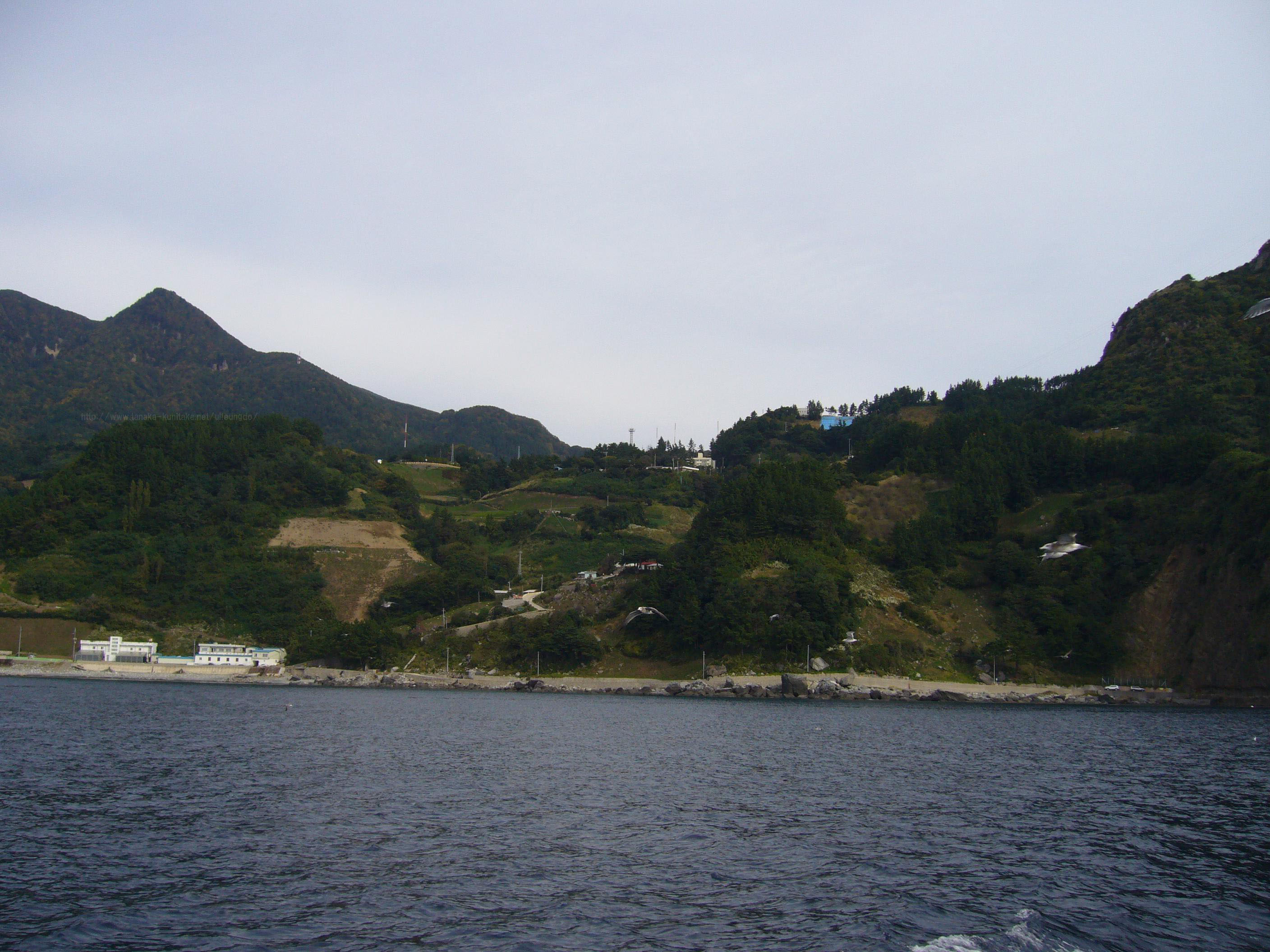 鬱陵島の斜面では所々開墾しているのが船から見える。