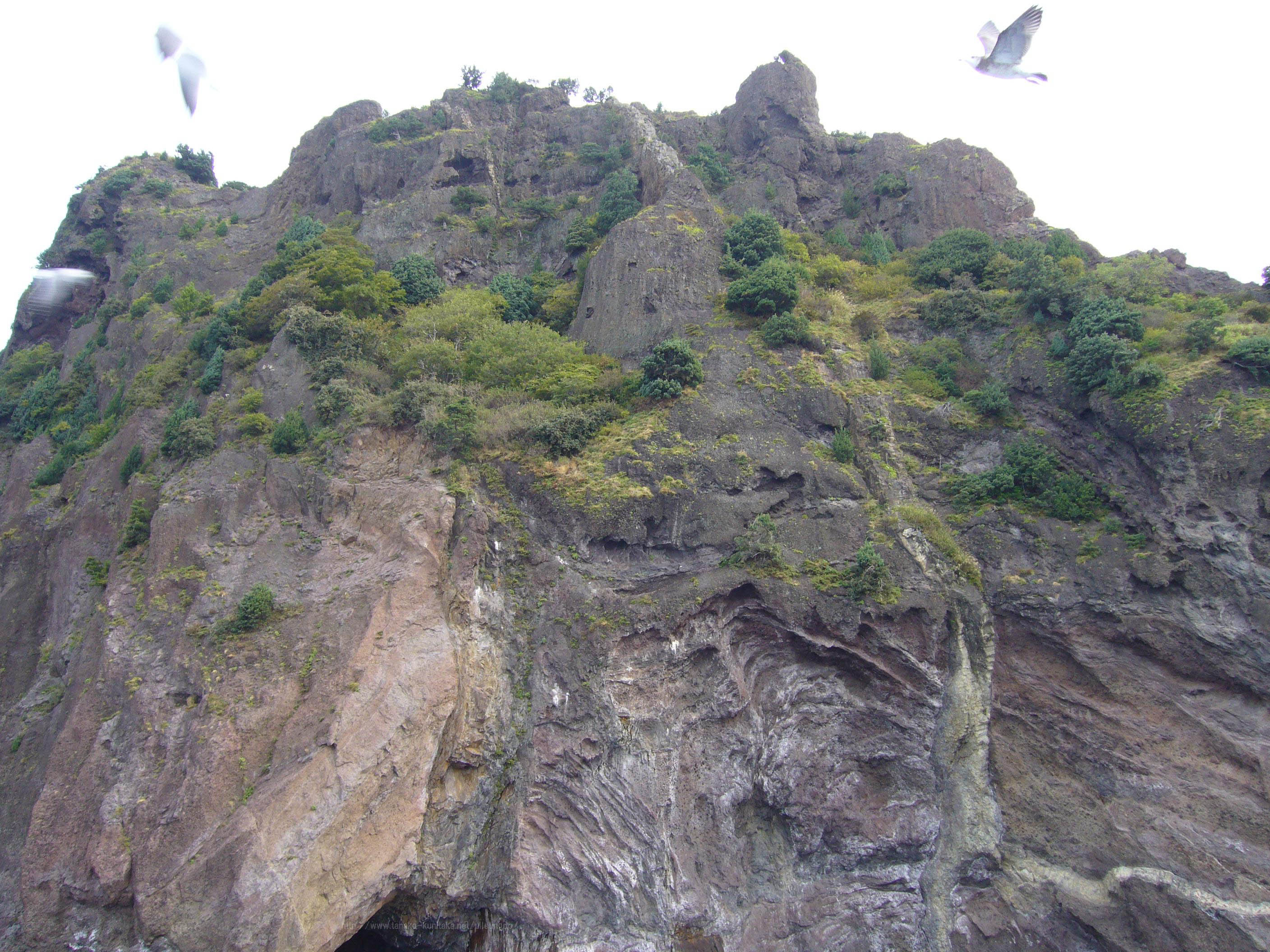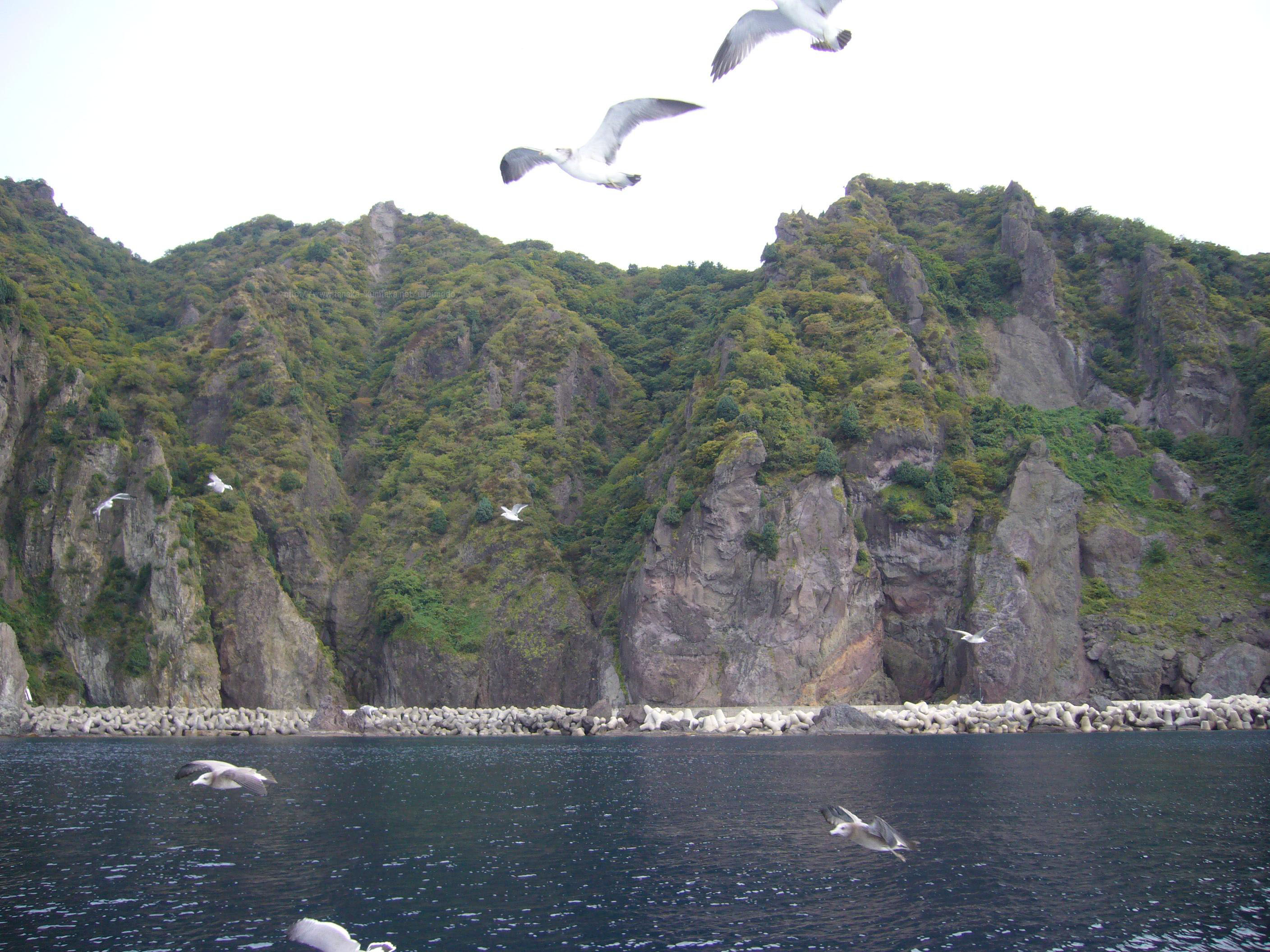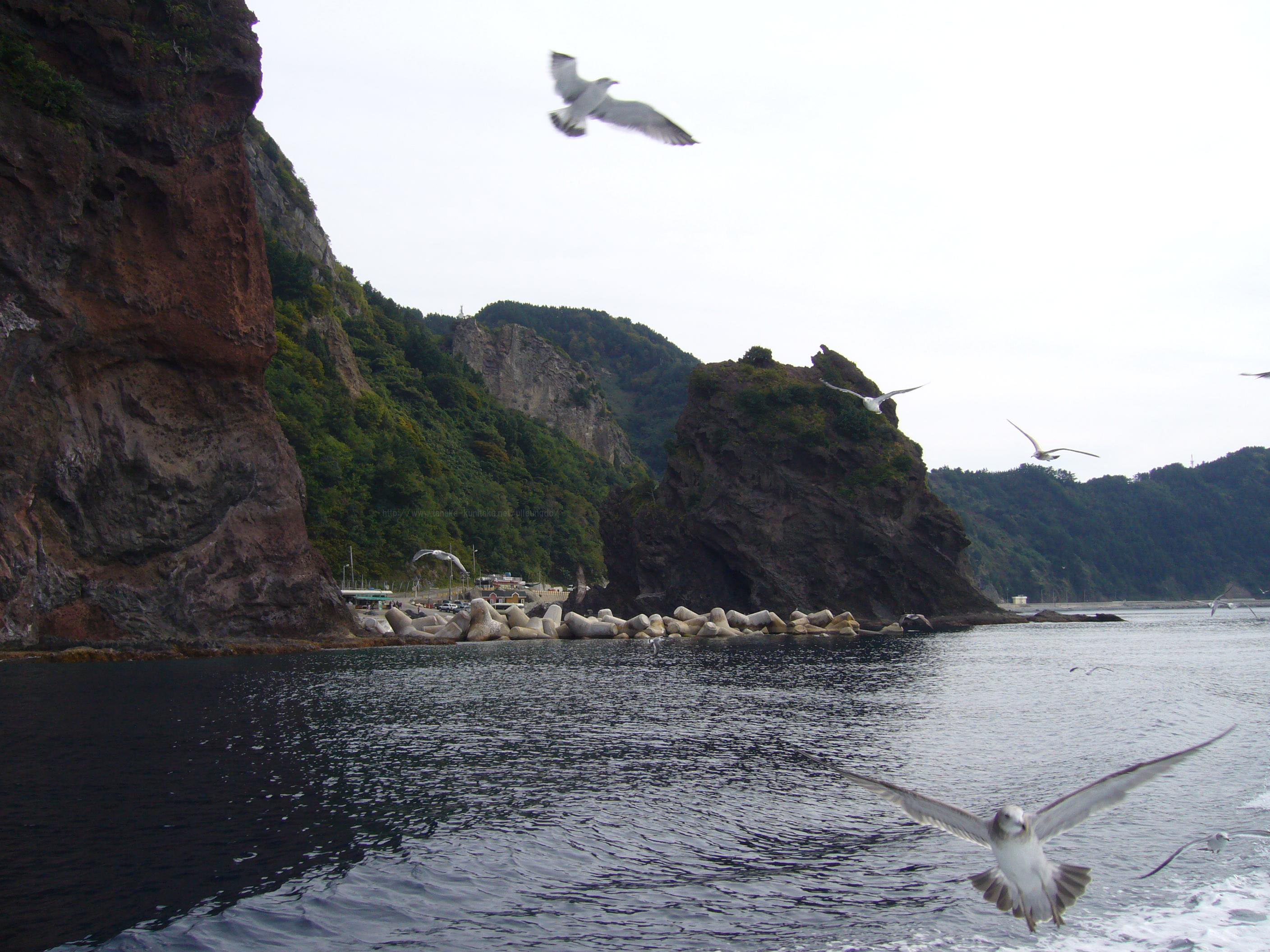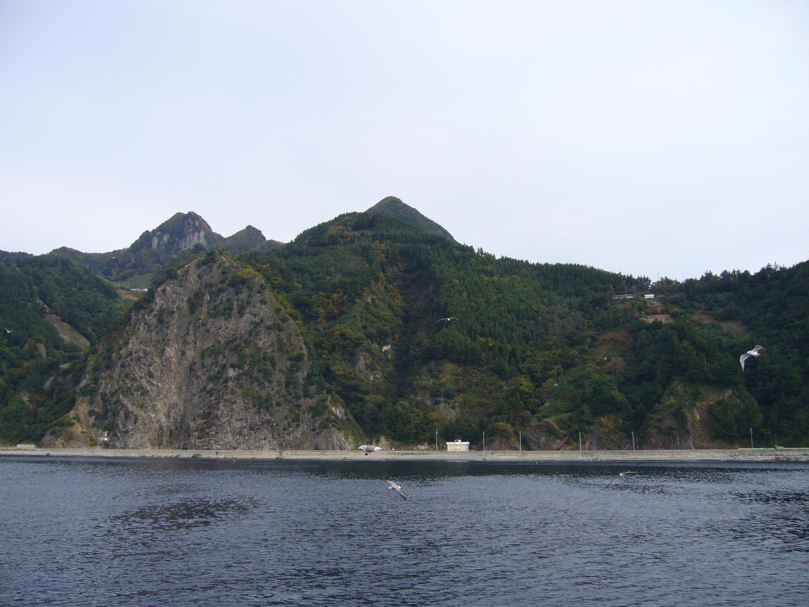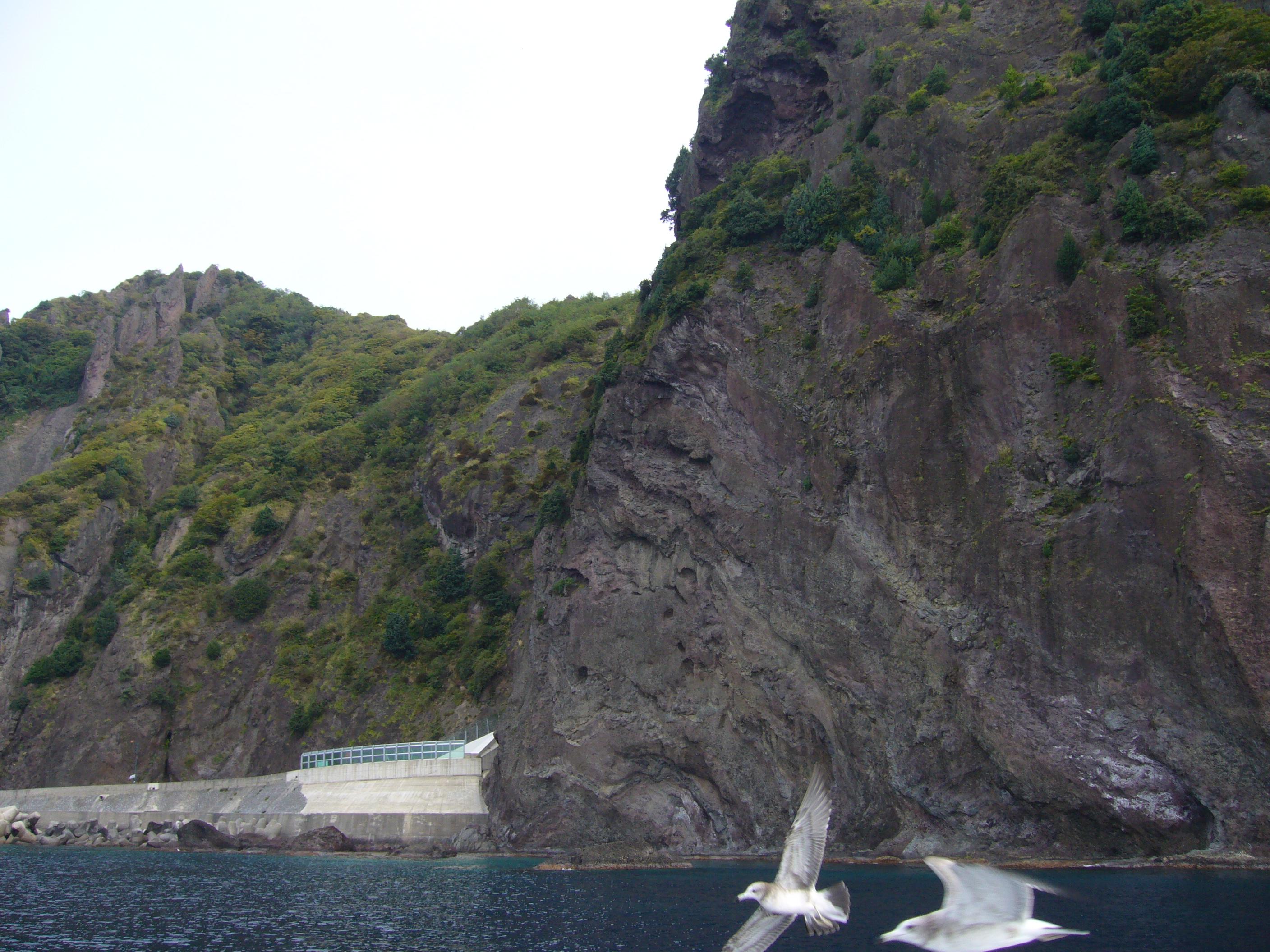 振り返って撮影。岩と岩の間を船が弧を描いて進んだのが分かる。鬱陵島南端には複数の岩礁が存在。
