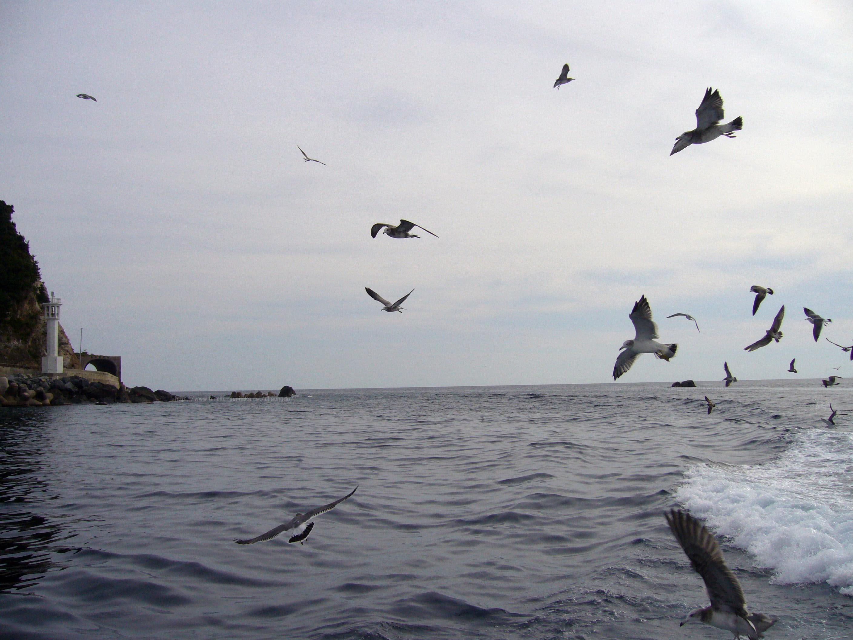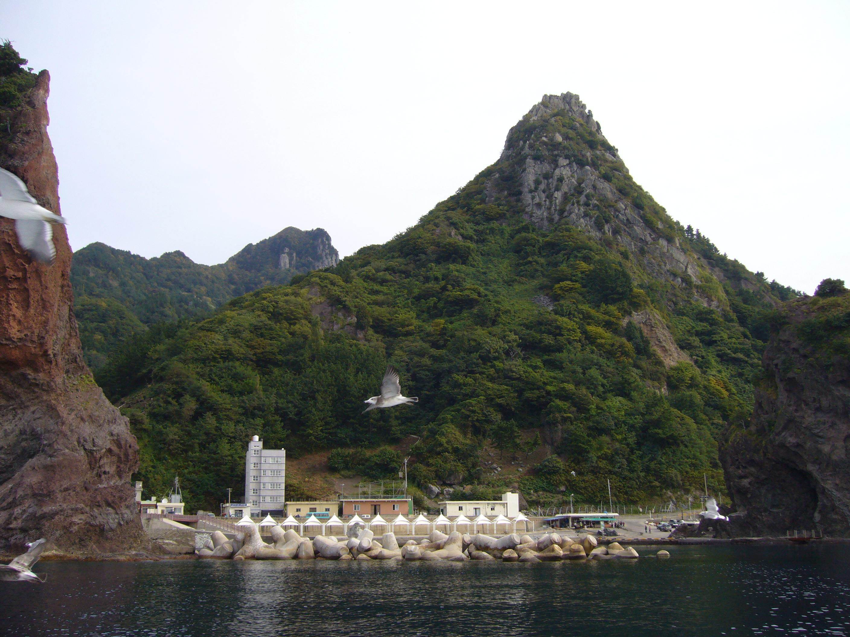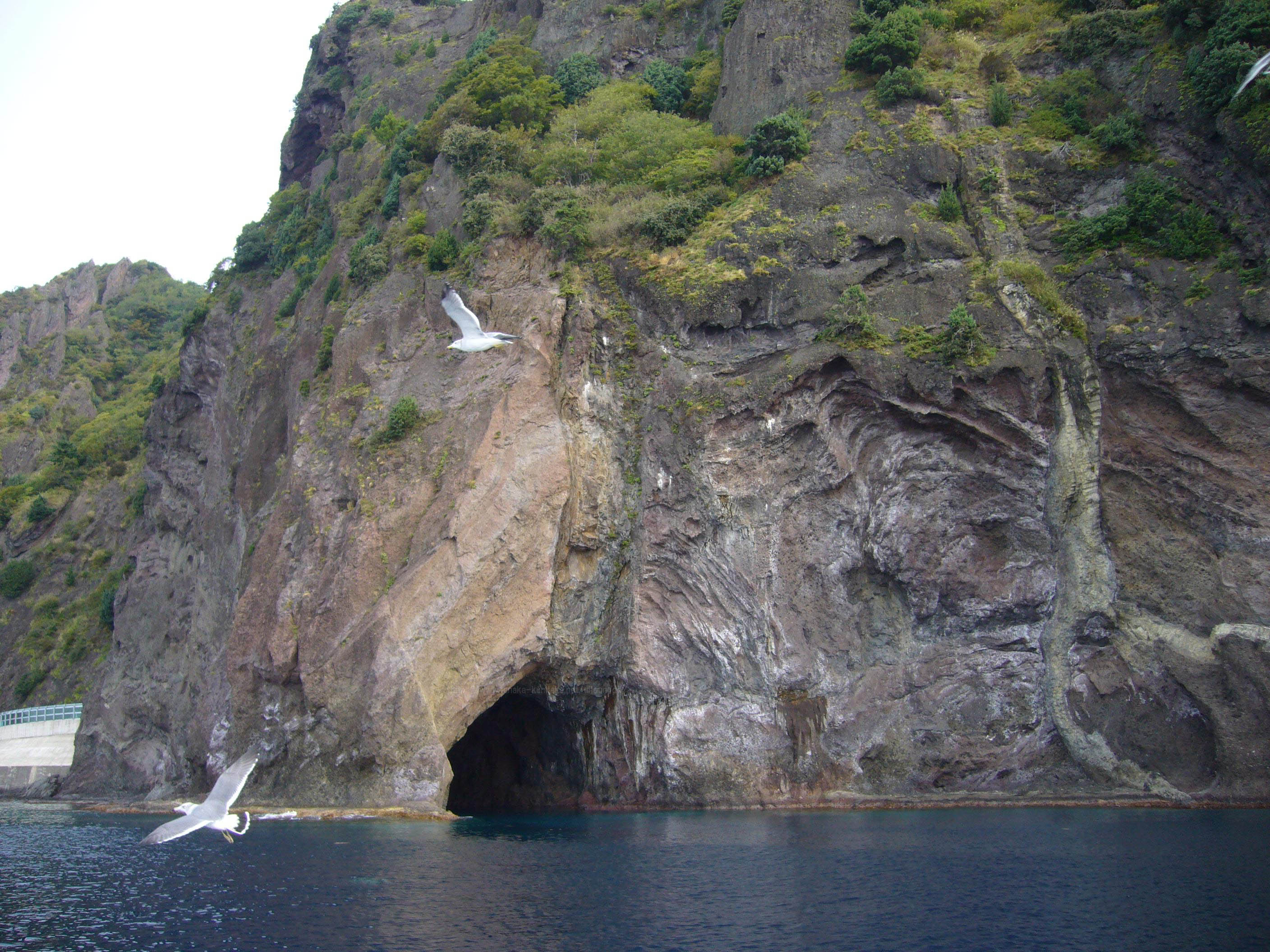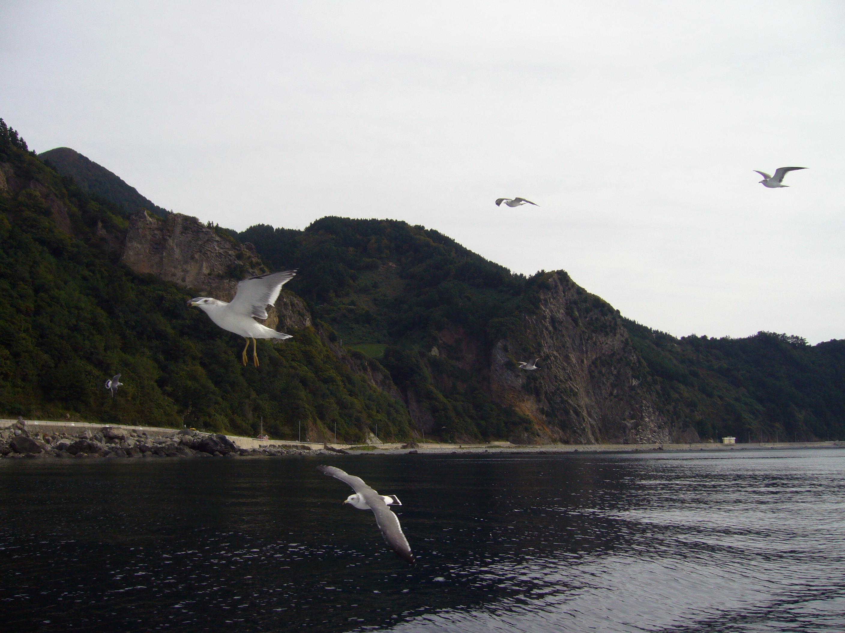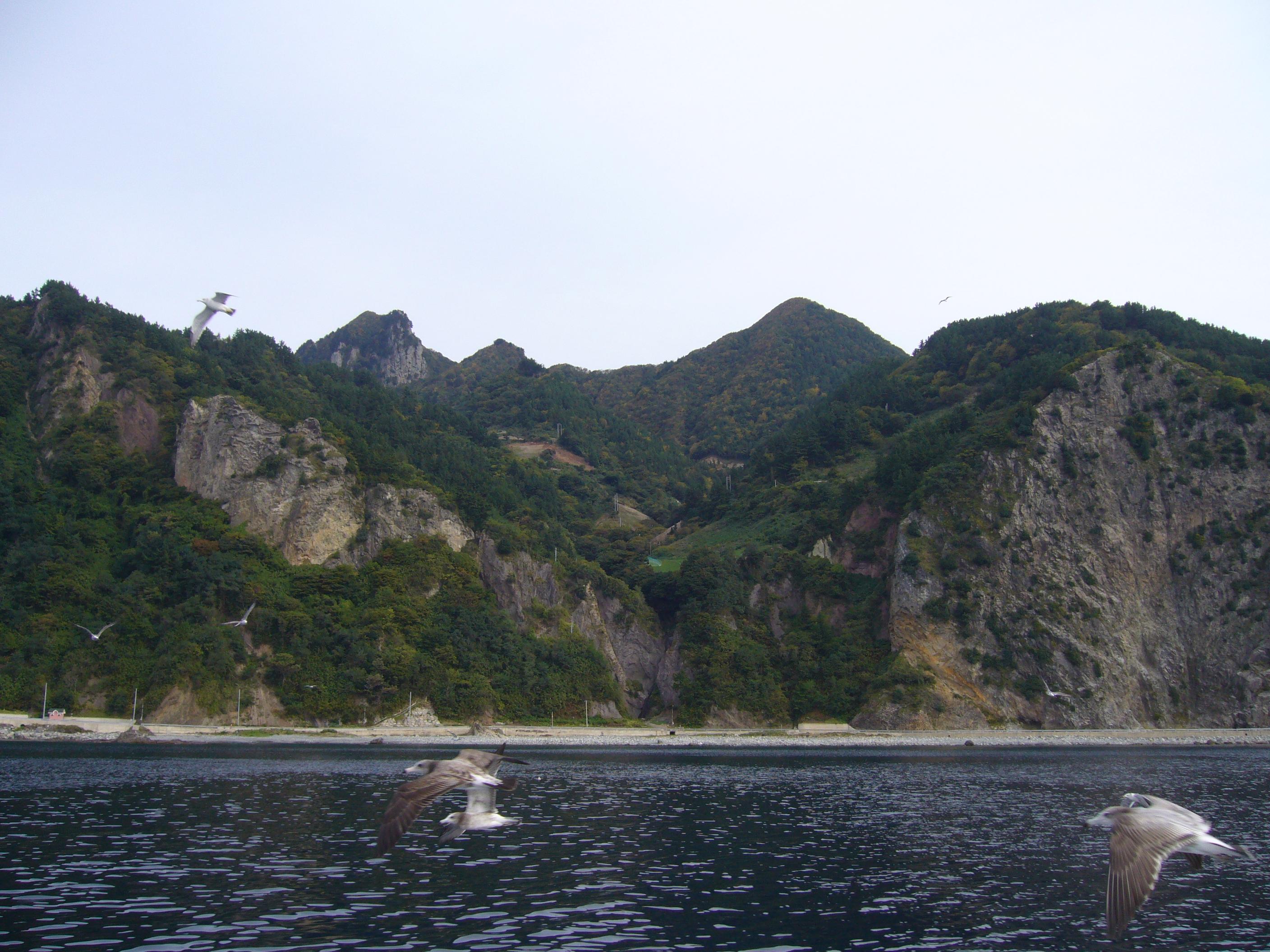 振り返って撮影。岩と岩の間を船が弧を描いて進んだのが分かる。鬱陵島南端には複数の岩礁が存在。