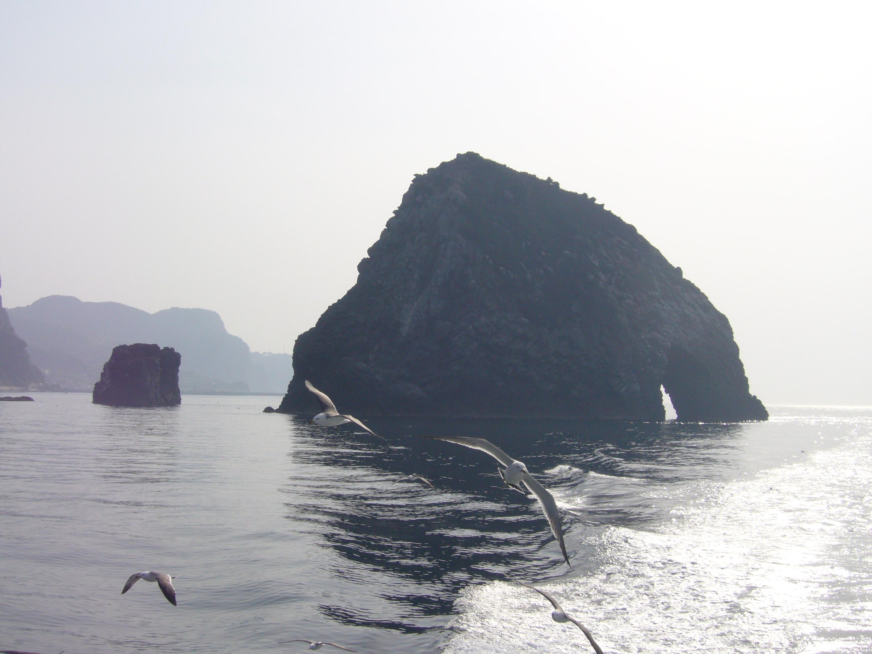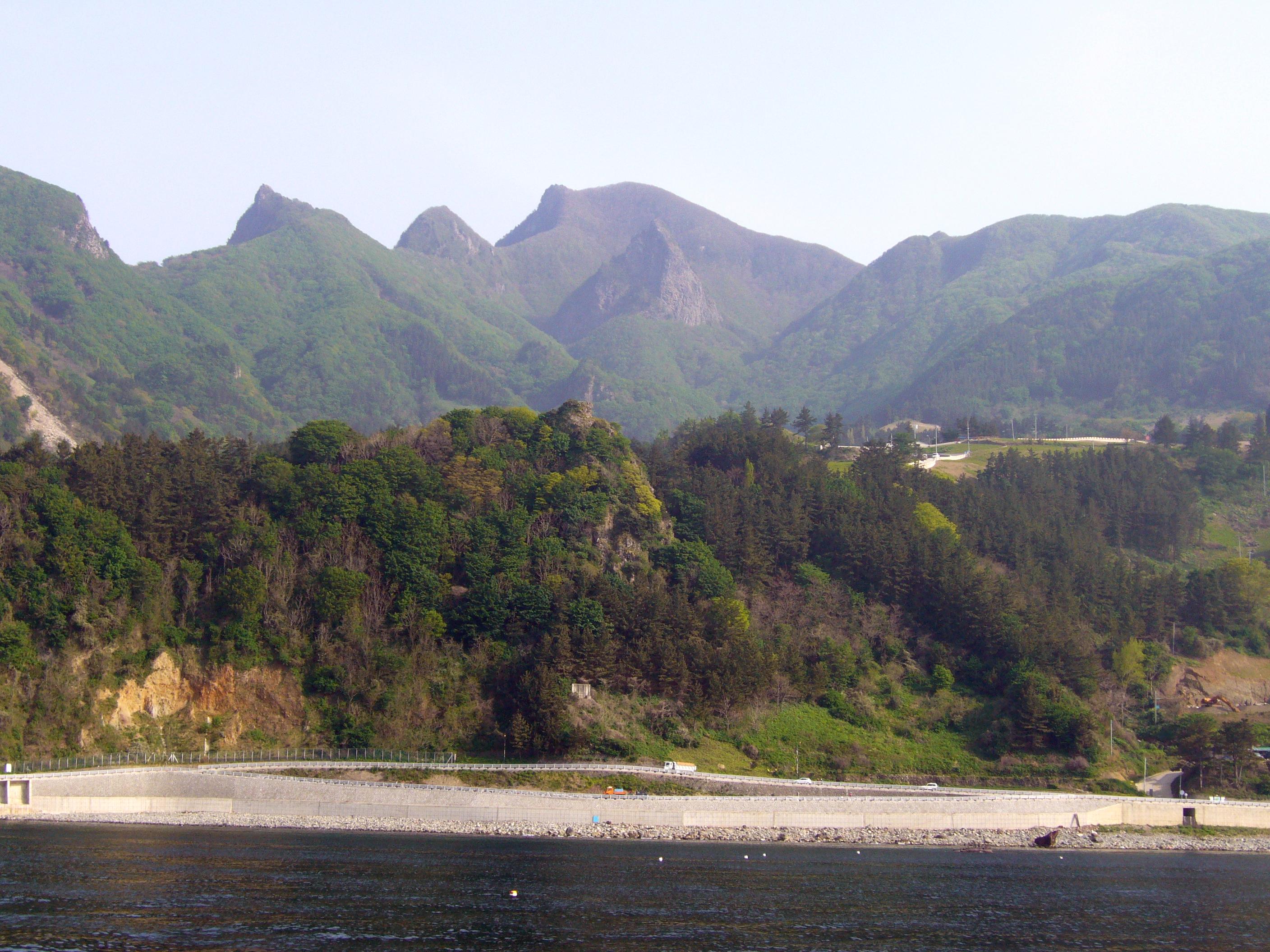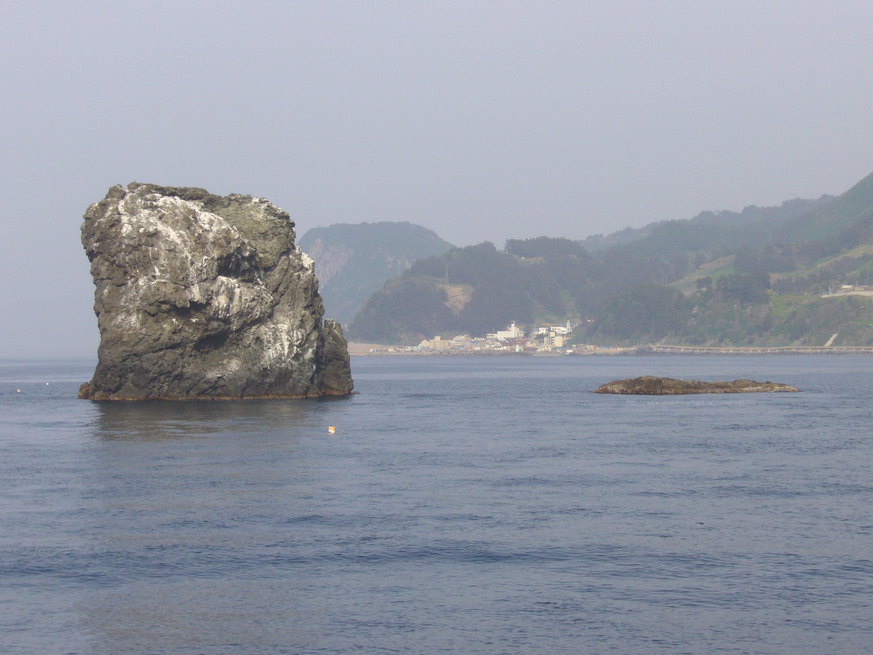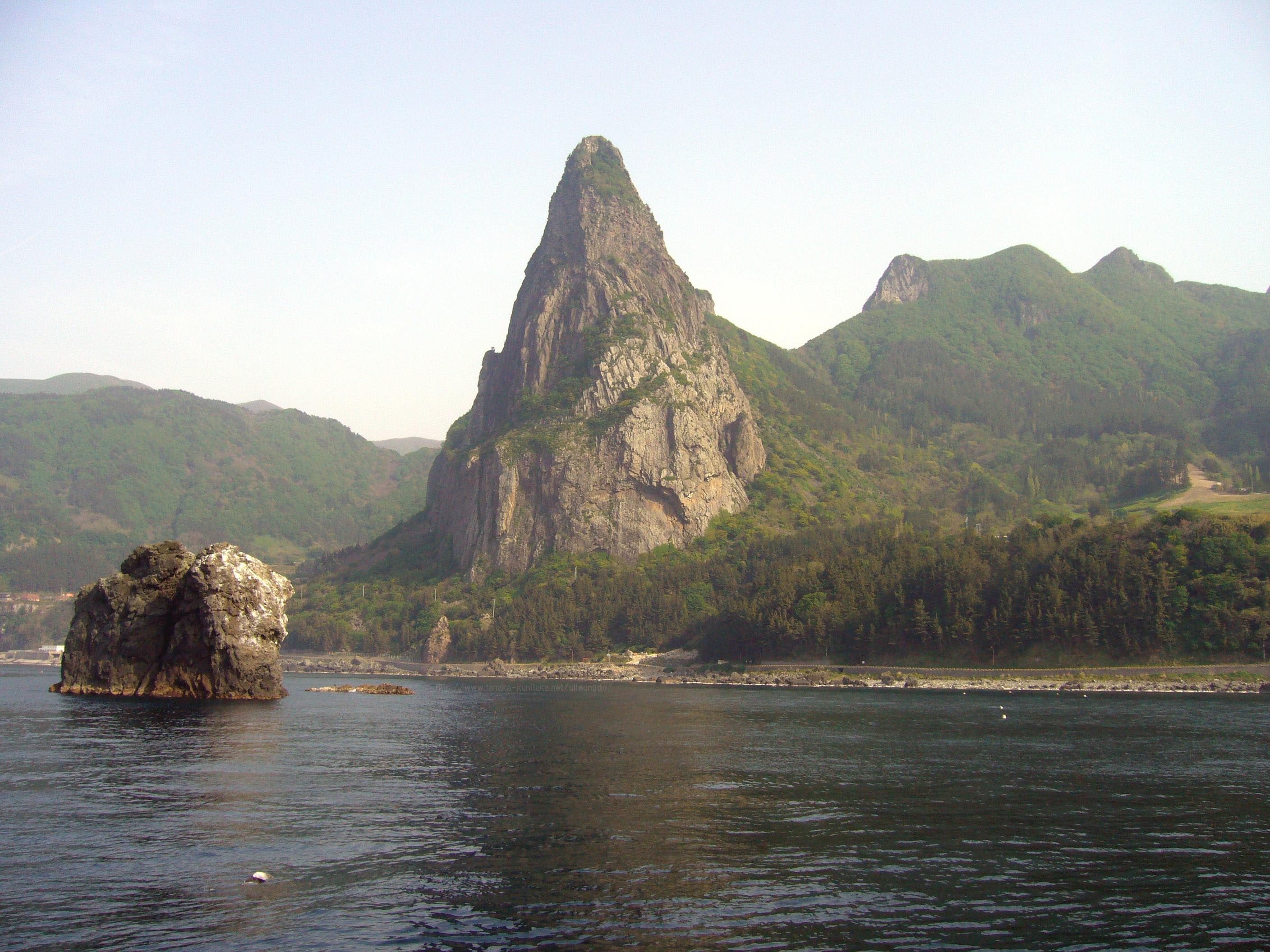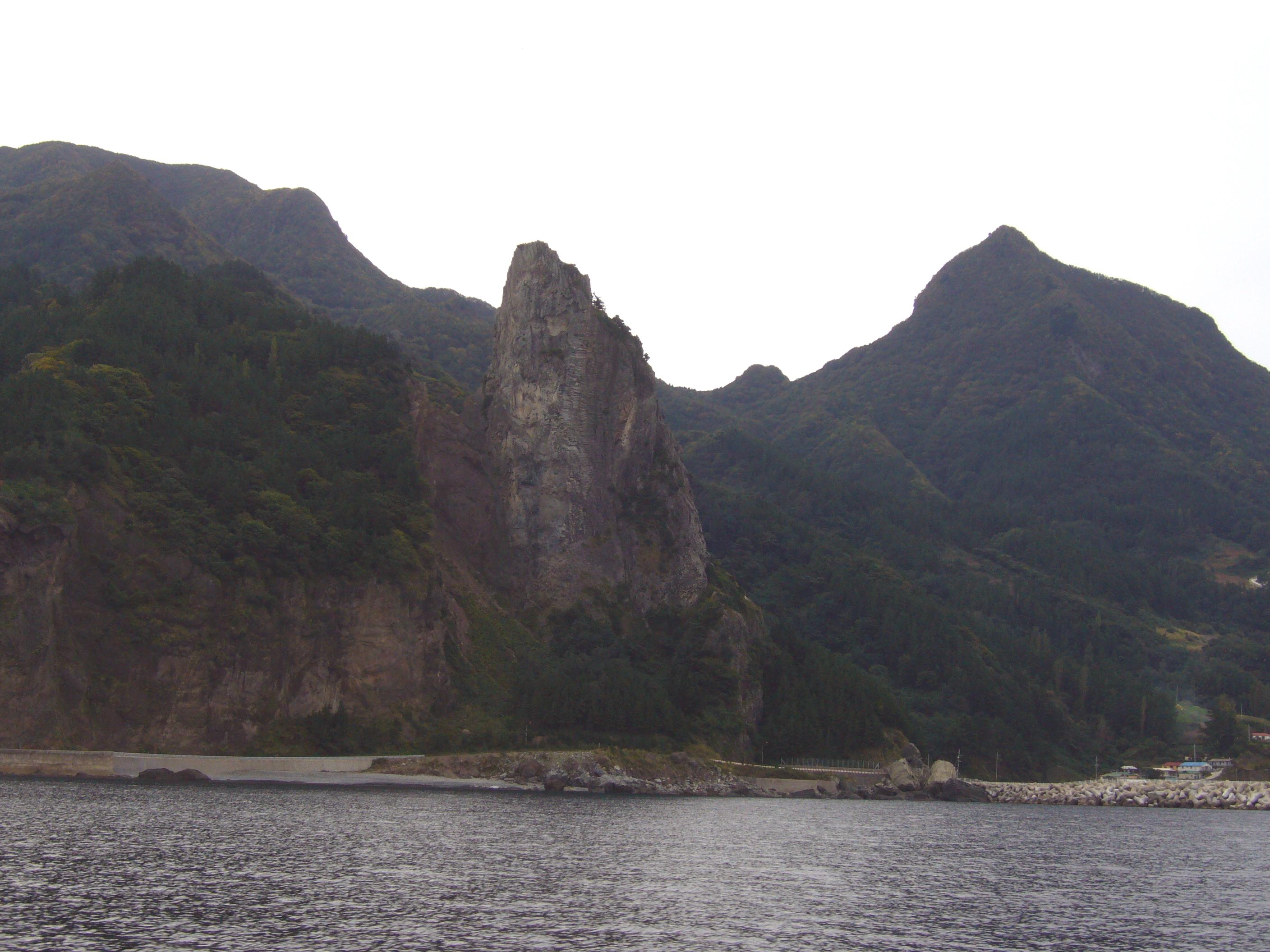 錐峰と岩。特徴ある形状の為、錐峰は鬱陵島古地図に多く記載されている。