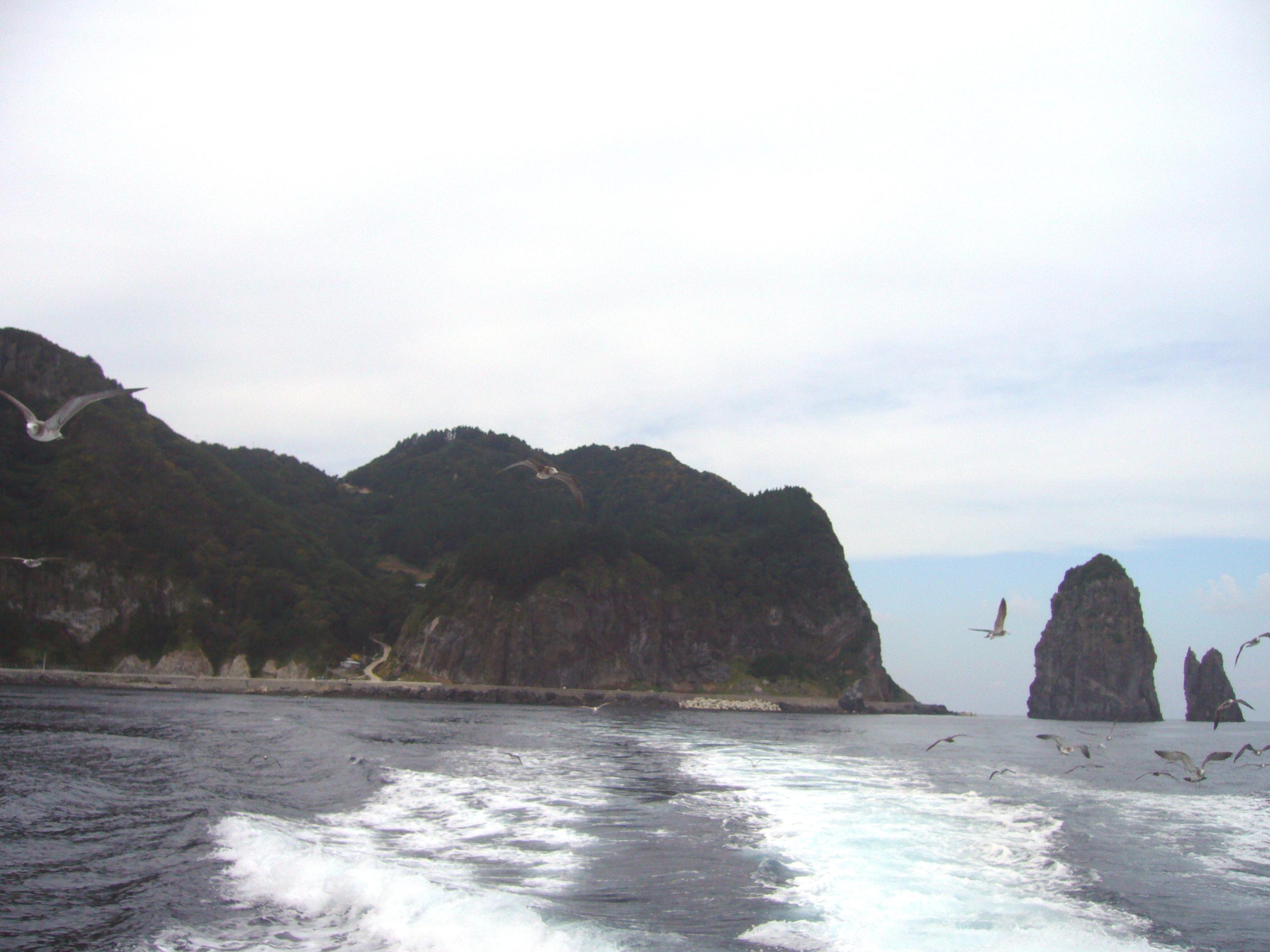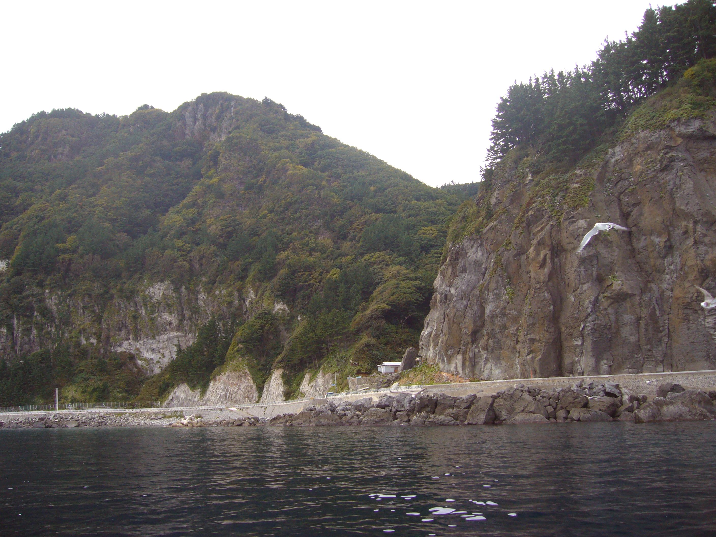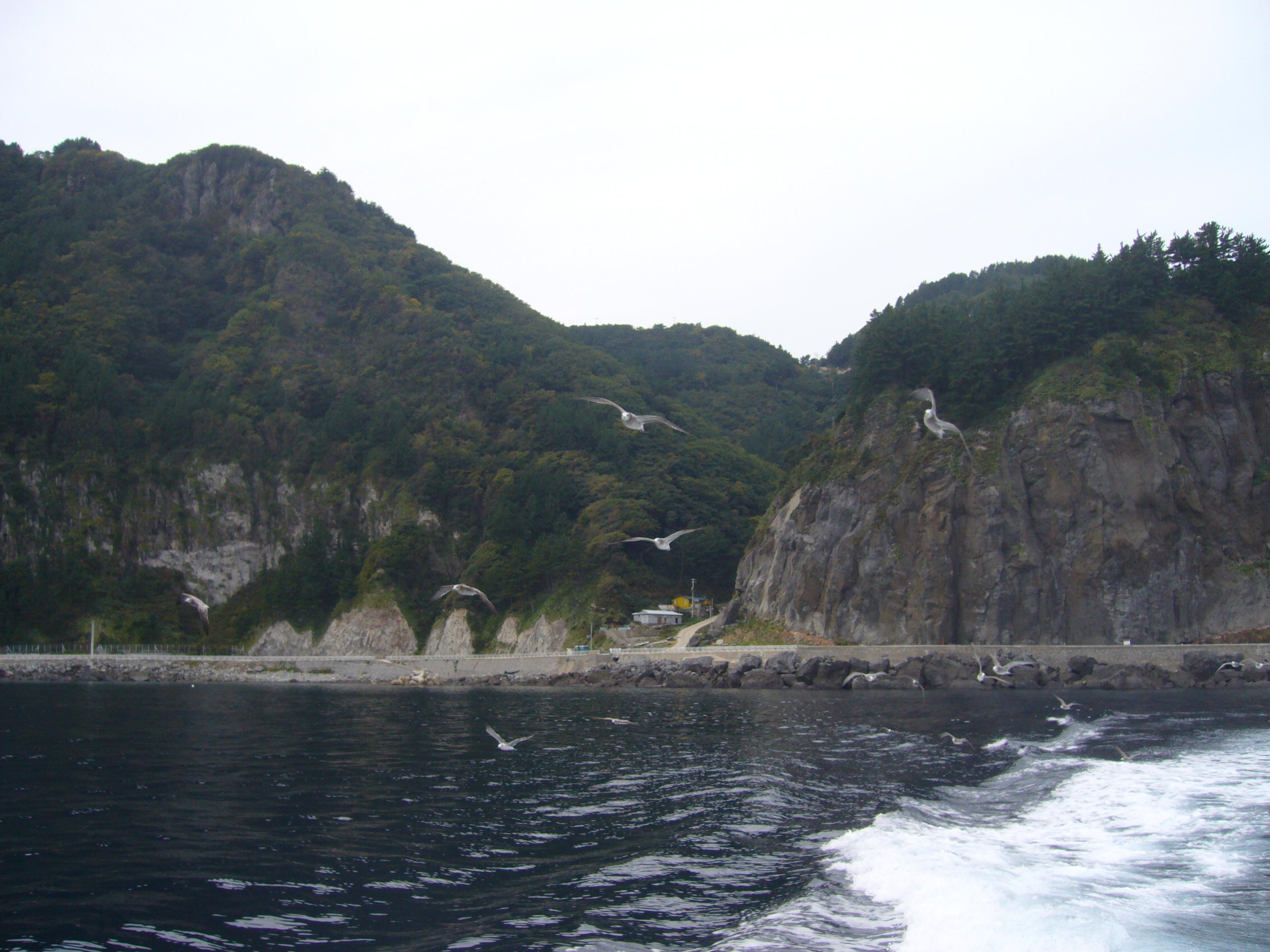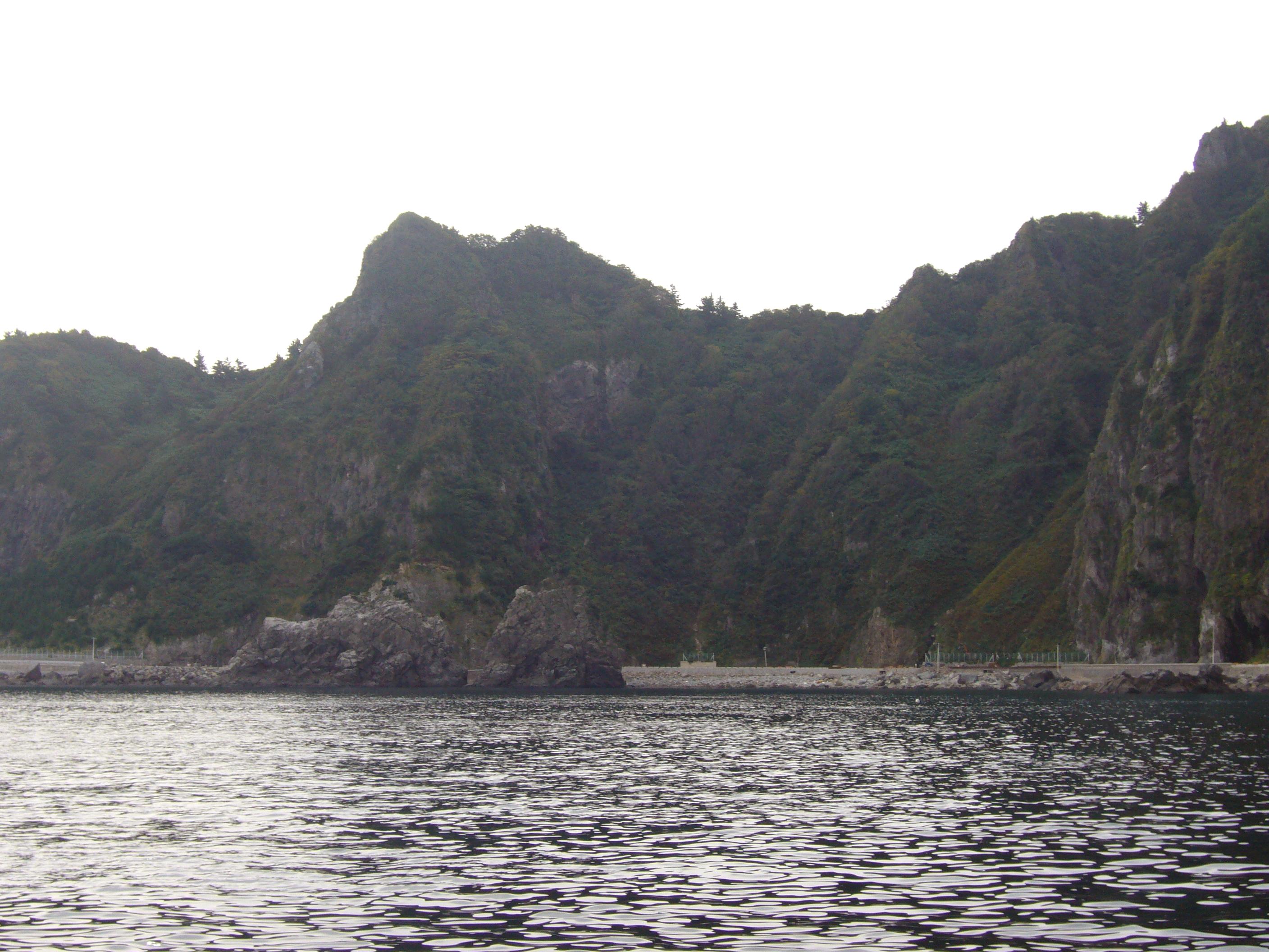 進行方向を撮影。天府4里の半島部分があるので上記写真のように鬱陵島海岸から一旦離れる必要がある。