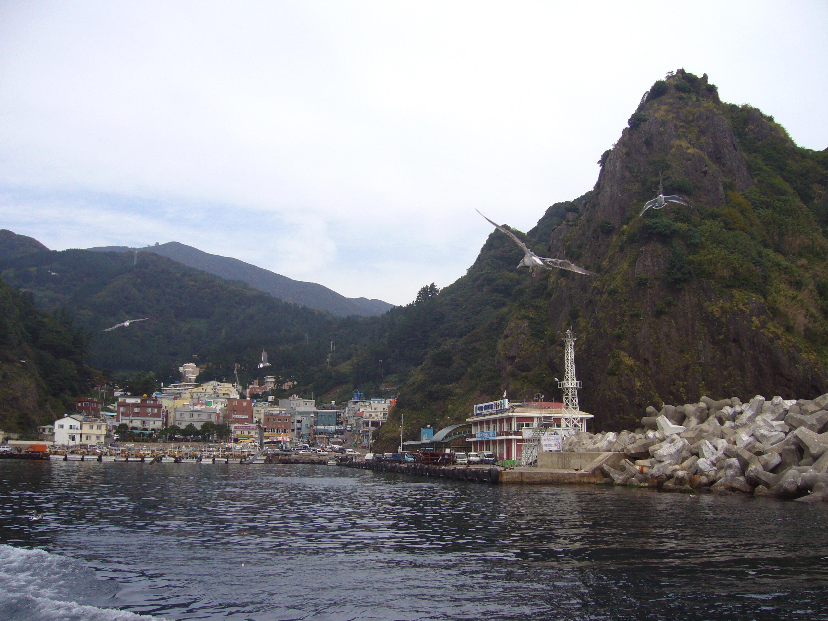 ようやく道洞に帰ってきた。左上に独島展望台が見える。